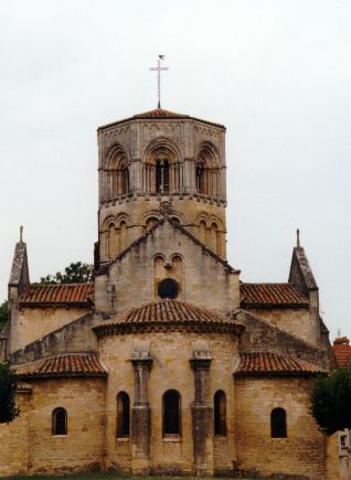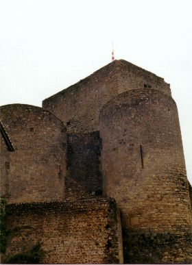 | Auf einer kleinen Anhöhe, die eigentlich einen schönen Blick verspricht, inmitten von Obstwiesen und Weiden liegt Semur. Eigentlich einen schönen Blick schreiben wir, weil gerade als wir dort anlangten, ein Gewitter sich drohend und sehr düster zusammenzubrauen begann und die Sicht sich auf wenige Meter beschränkte. Die kleine Kirche Saint Hilaire gehört zu den schönen des Brionnais. In der unweit von ihr gelegenen Burg wurde der hl. Hugo geboren, wahrscheinlich bedeutendster Abt von Cluny und Erbauer der Basilika von Paray-le-Monial sowie der zerstörten, gewaltigen dritten Abteikirche von Cluny. Heute ist vor allem noch der mächtige quadratischeDonjon zu besichtigen, der bei diesem Wetter besonders bedrohlich wirkte. |